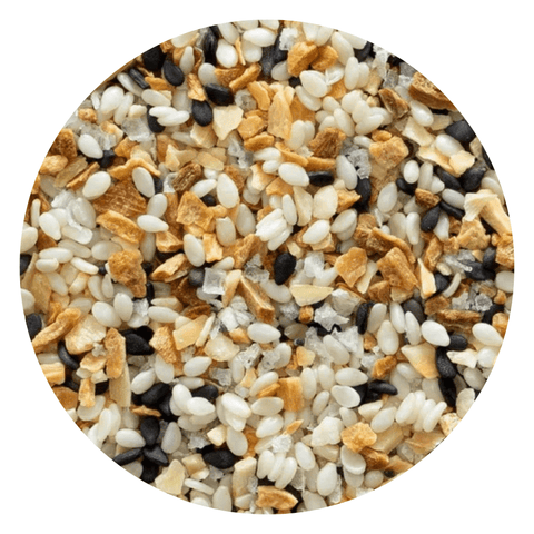 Organic Sesame Seed, Organic Garlic, Sea Salt, Organic Toasted Onion, Organic Black Sesame Seed, Organic Poppy Seed.