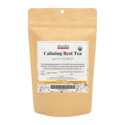 Ingredients: Organic chamomile, organic peppermint, organic Indian green tea decaffeinated, organic scullcap herb, organic wood betony, organic catnip herb and organic stevia leaf.