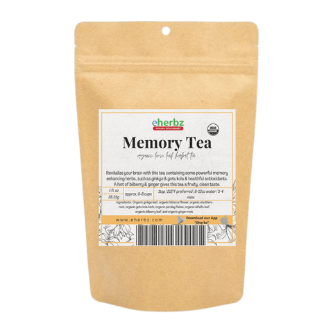 Revitalize your brain power with this tea containing some of the more powerful memory enhancing herbs, such as ginkgo and gotu kola, and healthful antioxidants. A hint of bilberry and ginger gives this tea a fruity, clean taste. Caffeine-Free.
